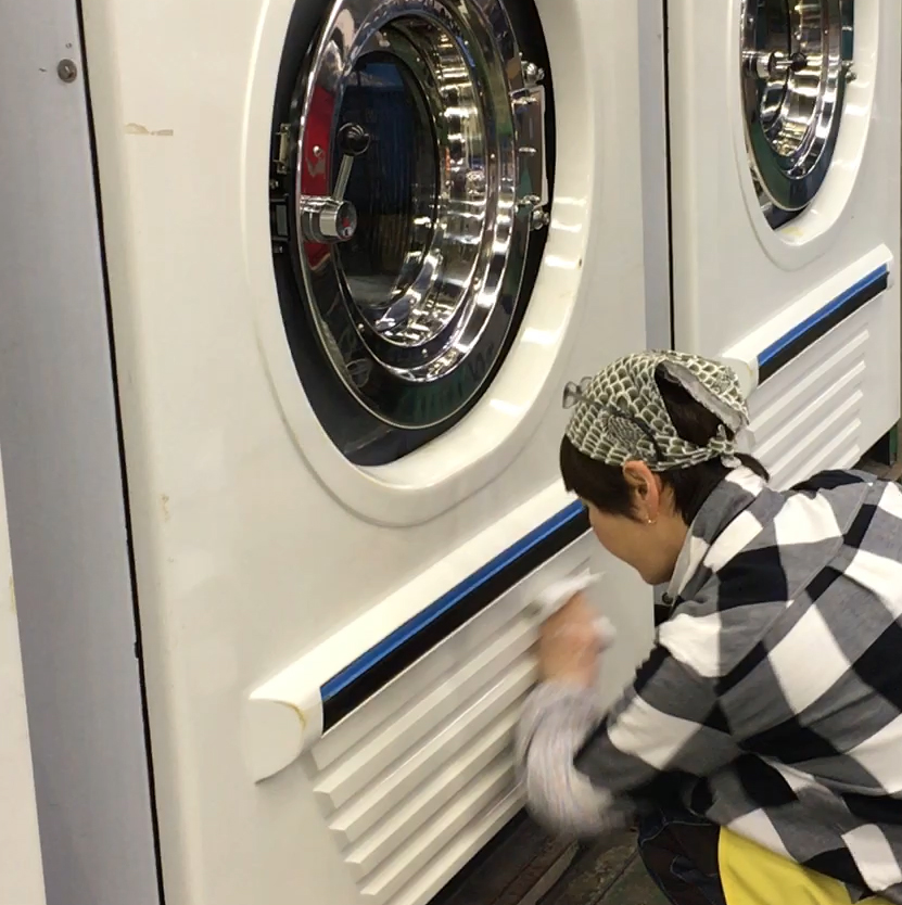 写真2-5 日中、時間が空いてワッシャーを掃除しているところ。