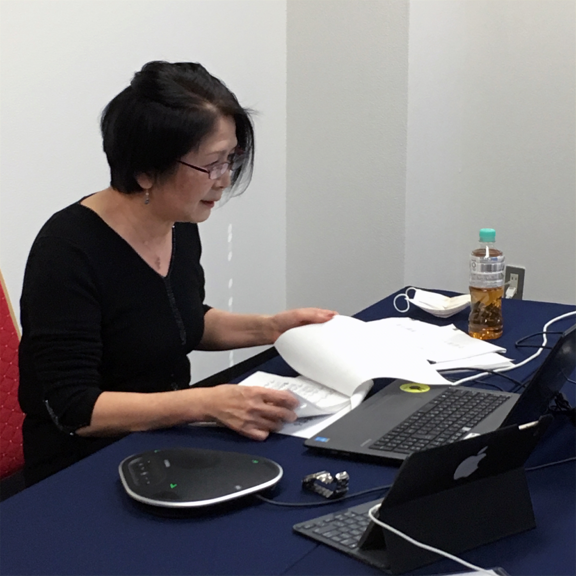 写真2-7 髪を振り見出して収録する井藤みどり。