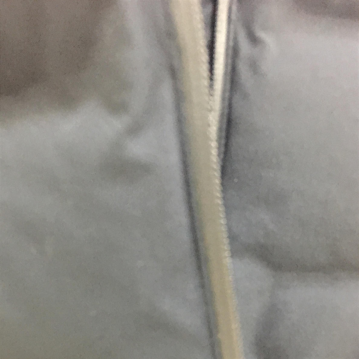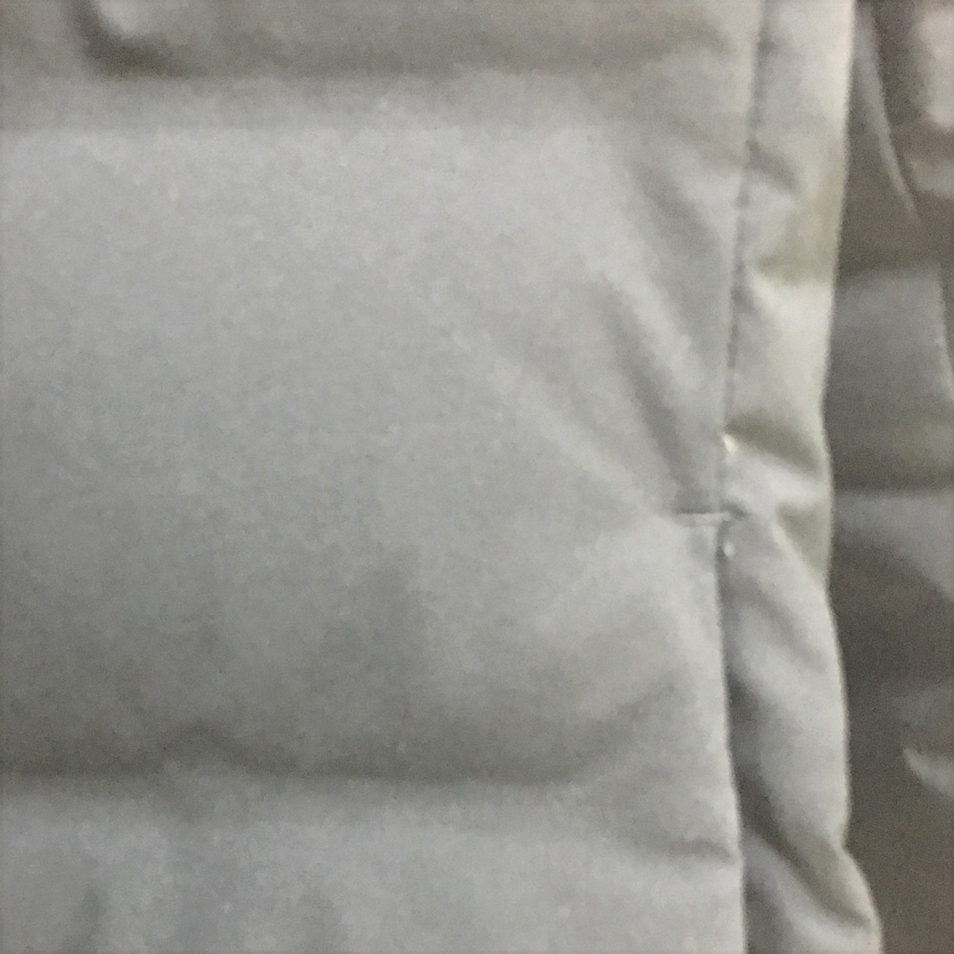 写真2-1,2-2は着用後のシームレスダウンです。写真2-3と比べるとシームレスとされる貼り合わせ部分が、着用前はハッキリとしていますが、着用後のものは一部剥がれているのが解ります。