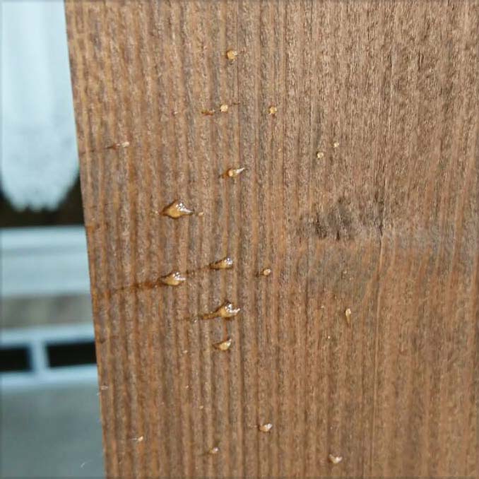 井藤が訪ねたときに、「柱が汗をかくので毎日拭き掃除をしてます」という事でしたが、触って見たらねばねばの脂状のものでした。