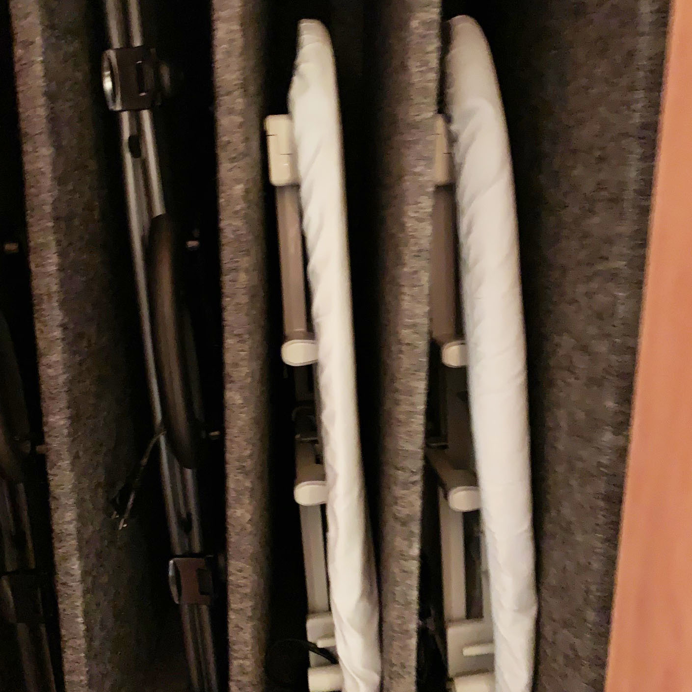 エレベーターホールの横に、アイロンのマークのついた扉(写真2-4,5)があったのであけてみました。アイロン台とアイロンが置かれていました。ズボンプレッサーが用意されている例は知っていますが、アイロンを貸してくれるのは初めてです。(写真2-6)