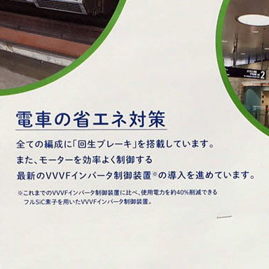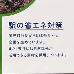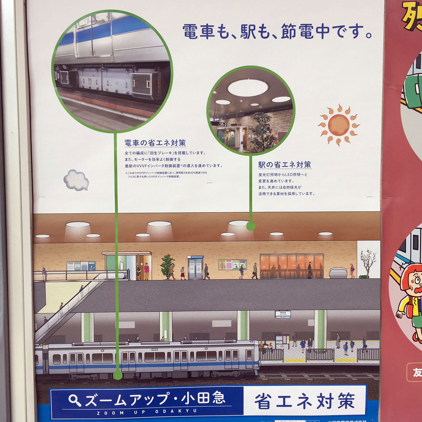 過日、小田急線のホームで、小田急電鉄がどれだけ省エネ対策に取り組んでいるかというポスターを見ました。写真2-1。