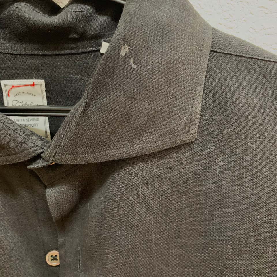 上着は、どちらもサマーウール、シャツはA社が麻のシャツ、B社が紺色の綿シャツ。どちらの上着にも衿にポツンとシミが付いてました。