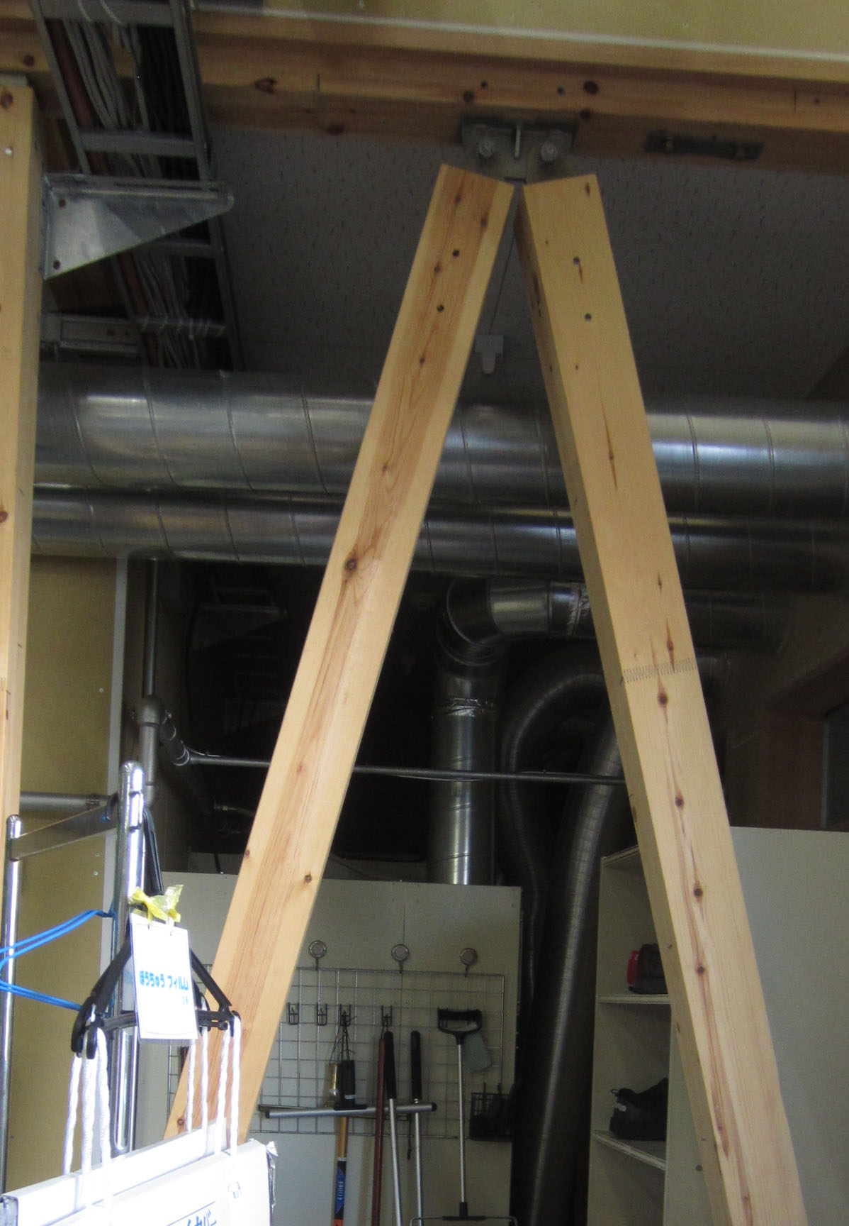 木の柱を鉄骨と組み合わせて造られていました。強度の問題なのか、筋交いの角度を珍しく感じました。