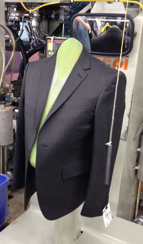 生地の光沢もあって、前身頃、肩、ラペルの形が決まり、きれいに出来上がっていました。クリーニングでは中々こうは仕上がりません。